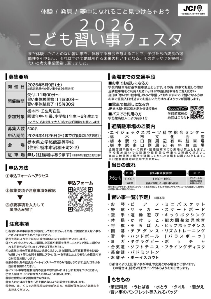 この度、栃木の未来を担う子どもたちの「夢」と「きっかけ」を応援するイベントの開催が決定いたしました。